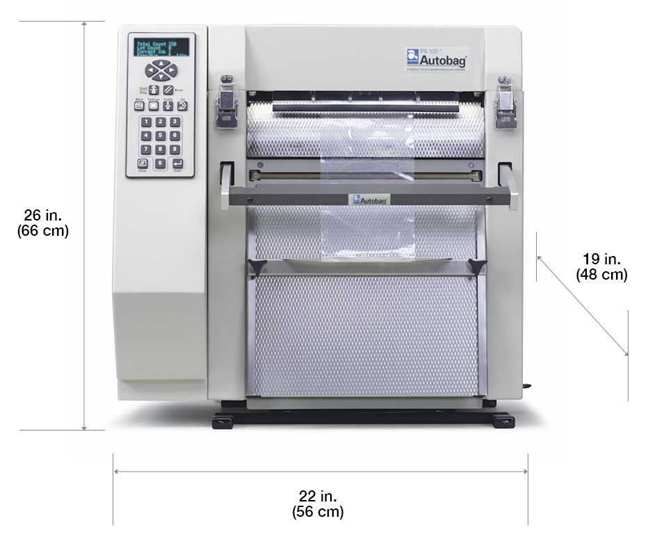 Operating at speeds up to 25 bags per minute (15 BPM OneStep version), these machines offer innovative engineering in a straightforward, tabletop design. The PS 125 features a small footprint of 22 x 19 inches, and weighs just 82 pounds. The quiet, all-electric design does not require compressed air to run.