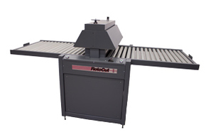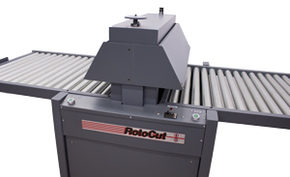 The Rotocut Die Cutter is a pass through die cutting machine, has powered (top and bottom) 6 inch diameter rollers, extra heavy duty self-aligning roller bearings, heavy duty infeed and discharge rollers with anti-friction bearings, can feed from left to right and / or right to left side actuation, and uses a digital height adjustment indicator.